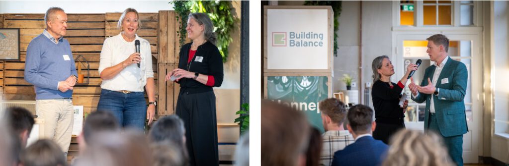 Hierna plaatste Jan Willem van de Groep, programmamanager binnen Building Balance, de regionale ambities in een nationaal perspectief. Hij lichtte de Nationale Aanpak Biobased Bouwen (NABB) toe en de bijbehorende doelen: in 2030 moet 30% van de nieuwbouw en 30% van de isolatie in bestaande bouw bestaan uit minimaal 30% biobased materialen. De afgelopen jaren zijn al belangrijke stappen gezet: groei in vezelteelt, nieuwe fabrieken, duizenden biobased woningen en renovaties, en steeds meer opdrachtgevers die sturen op CO₂-reductie.